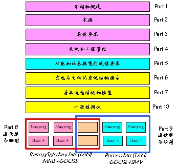 圖1 IEC61850規(guī)約十個部分的名稱和關(guān)系圖