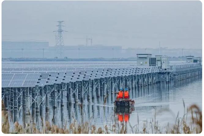 該項(xiàng)目位于溫州浙南產(chǎn)業(yè)集聚區(qū)甌飛圍區(qū)內(nèi)的灘涂上,占水域面積約4.7平方公里。項(xiàng)目將漁業(yè)養(yǎng)殖和光伏發(fā)電相結(jié)合,“上可發(fā)電、下可養(yǎng)魚(yú)”,并網(wǎng)后年平均發(fā)電量達(dá)到6.5億千瓦時(shí)